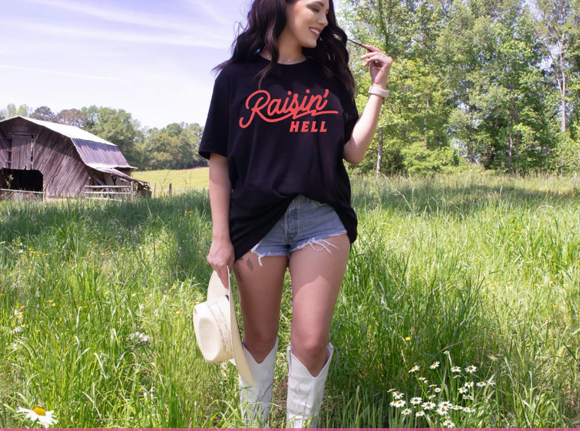 Raisin' Hell T-Shirt, Country Music Inspired Tee, Patriotic Cowgirl TShirt, Western Graphic Tee,